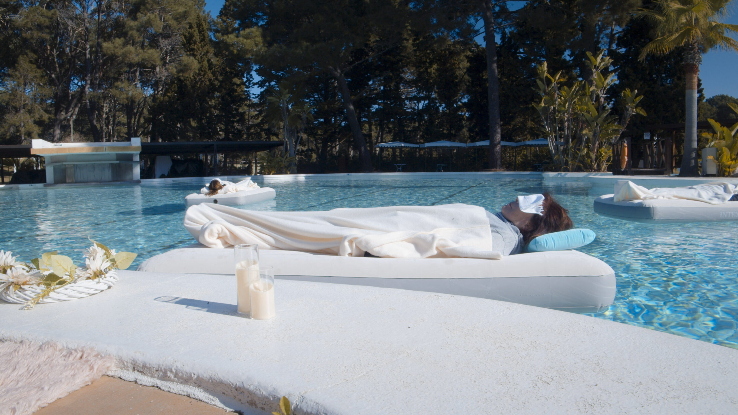 La velada comienza con una toalla de mano impregnada con aceite esencial. Posteriormente, se formará una fila para ingresar a la piscina, donde encontrará su colchón flotante. Le pedimos que se quite los zapatos antes de subir al colchón, donde le ofreceremos una manta ligera, una almohada y otra toalla de mano con aceite esencial.