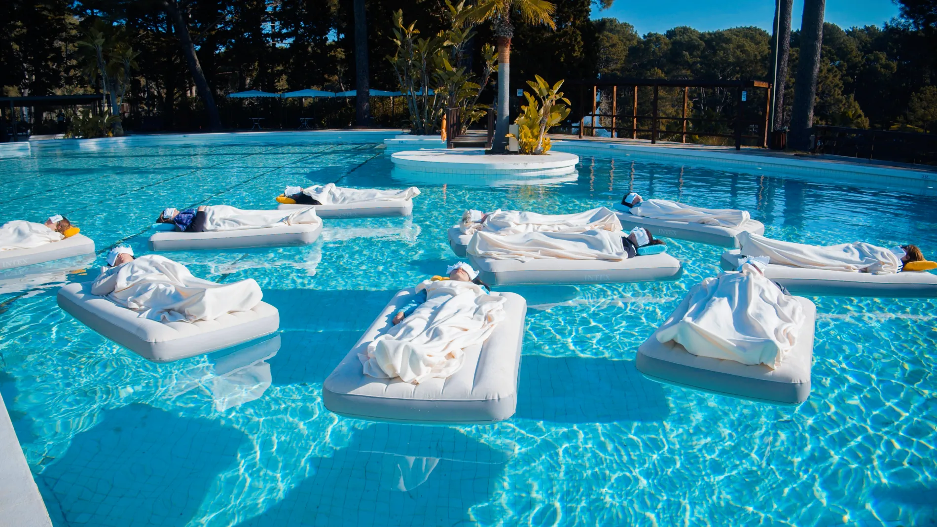 Aunque la experiencia se lleva a cabo cerca del agua, hemos diseñado todo para que no te mojes. Sin embargo, al entrar y salir de las embarcaciones flotantes, deberás pisar el primer escalón de la piscina. Nuestros asistentes estarán allí para ayudarte. Te pedimos que te quites los zapatos antes de subir a las balsas, que están hechas de tela de felpa con agarre, minimizando el riesgo de caídas.